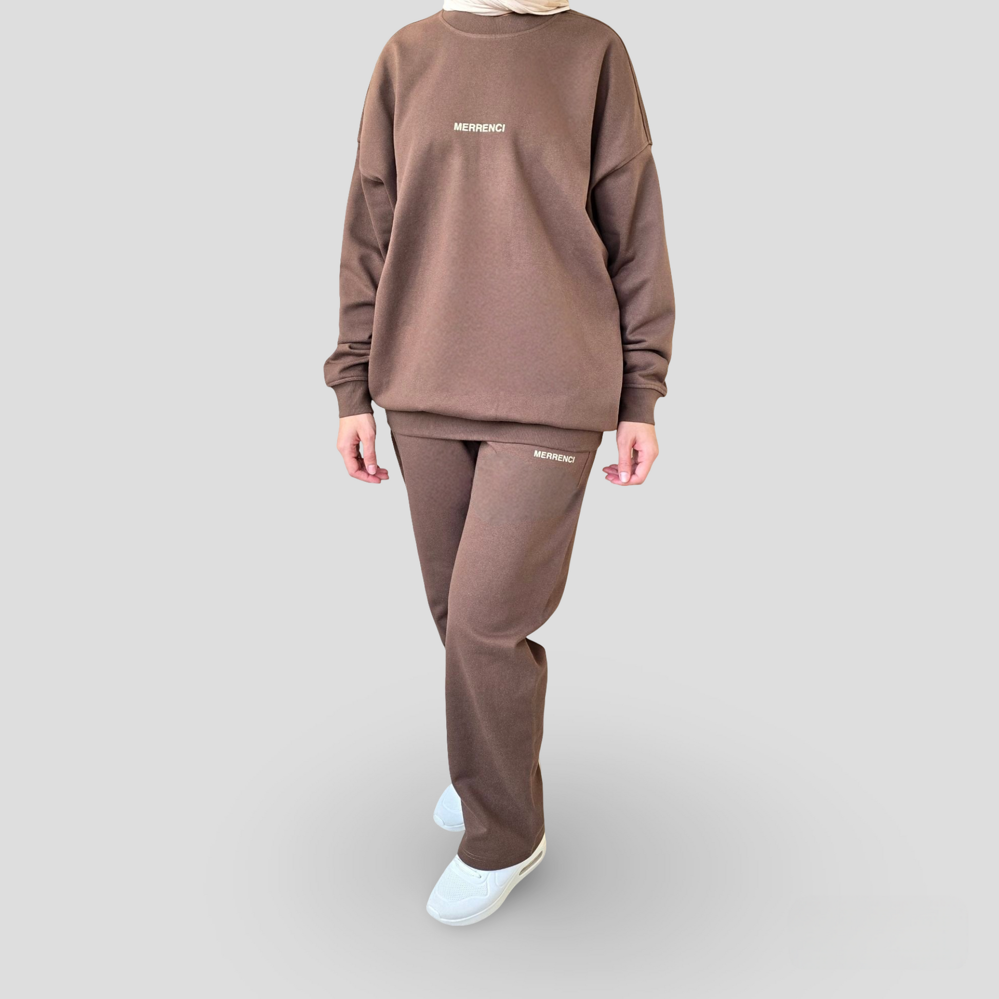 Redefine everyday comfort with the MERRENCI Everyday Attire Comfy Set, thoughtfully crafted from 100% premium cotton. This versatile set includes a brown oversized sweater, featuring a relaxed fit and dropped shoulders for effortless style, and wide-leg pants, designed for ultimate comfort and a flattering silhouette.